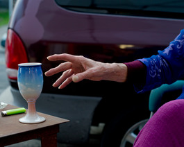 USA. Vallejo, CA. 2016. Nell, an artist, drinks wine outside...