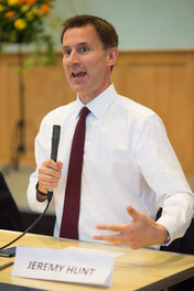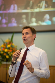 GB. England. Godalming. 2017. Election Hustings with Dr Louise Irvine and Jeremy Hunt.