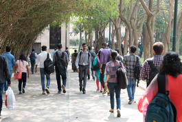 INDIA. Mysore. 2018. Visitors to the Global Educational Centre...