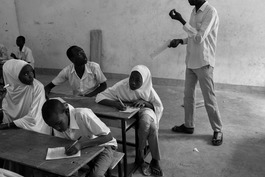 Africa. Niger. Diffa. 2017. Young man teaches Koran to the young...