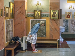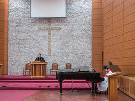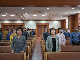 DPR Korea. Pyongyang. 2015. Foreign worshiper at the Church of...