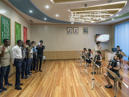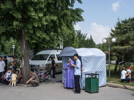 DPR Korea. Pyongyang. 2015. A director calls the shots as an...