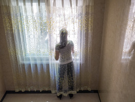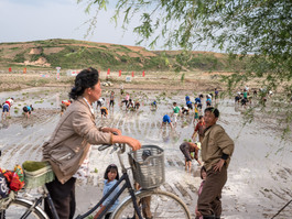 DPR Korea. Sinuiju. 2015. A woman in traditional dress prepares...