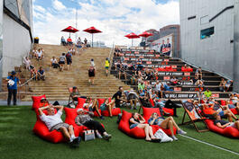 AUSTRALIA. Melbourne. Watching tennis. Federation Square. 2018....