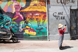 France. Paris. 2018. Miyako Yamada, reflected green from street....