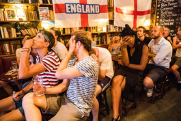 France. Lyon. 2018. The Smoking Dog Pub. Fans watch World Cup...