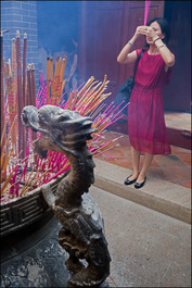 China. Guangdong. Shenzhen. A woman pays her respects in a...