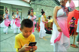 China. Guangdong. Shenzhen. A father takes a photograph...