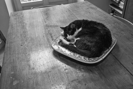 ITALY, Milan, a cat having a rest on the table.