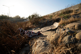 MEXICO. Tijuana. 2019. A homeless man’s “shelter” built against...