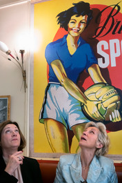 France. Paris. 75002. Wedding lunch in a restaurant. Three women....