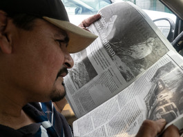 With crime photographer Margarito. Newspaper, "Mexico the cemetery...