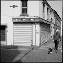 GB. Northern Ireland. Carrickfergus. 2019. Shuttered shop in...