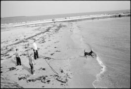 GB. Northern Ireland. Carrickfergus. 2019. Breakwater and beach...