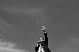 Istanbul, Turkey, 2019. Ekrem Imamoglu speaks during a rally...