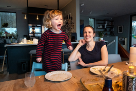 NORWAY. 2020. Nesoddtangen. At home with daughters Boe and Billie,...