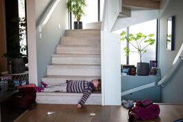 NORWAY. Nesoddtangen. April 10, 2020. At home with daughters...
