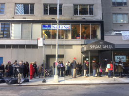 USA. NYC. November 8th, 2016. Residents wait two to three hours...