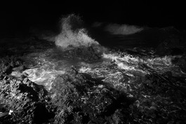 GREECE. Lesbos. 2015. The rough Aegean sea at night as seen by...