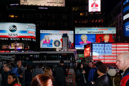 USA. NYC. November 8th, 2016. Election Day. People watch the...