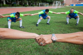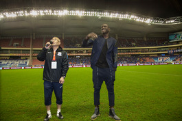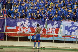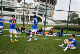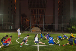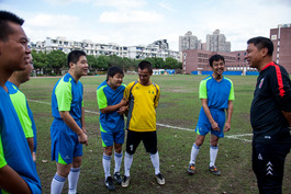 China. Shanghai. 2016. Football. At the old Expo site a few fans...