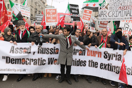 GB. England. London. Oxford St. Pro-Syria March. 2016.