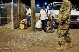 CUBA. Guantanamo Bay. 2017. A guard hides her face at Guantanamo...