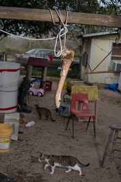 USA. Hebbronville, TX. 2017. Feeding chickens at La Javelina...