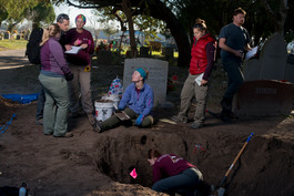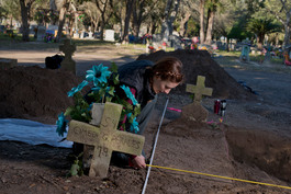 USA. Falfurrias, TX. 2017. Student volunteers excavate unmarked...