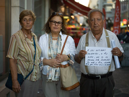 FRANCE. Nice. 2016. Nice residents. Signs read from left to right:...