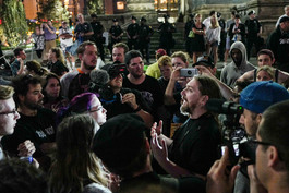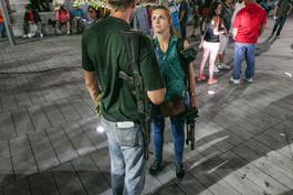 USA. Cleveland, Ohio. 2016. A journalist talks to an open-carry...