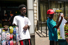 USA. Cleveland, Ohio. 2016. Vendor on East 4th Street during...
