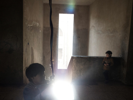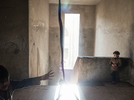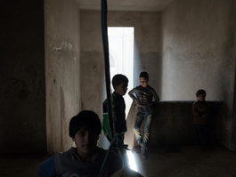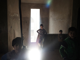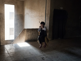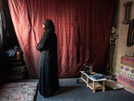 Om Feras is seen in a shelter...