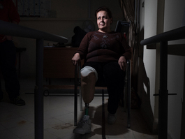 Samira, 50, goes through rehabilitation at a center in Damascus...