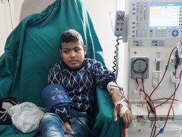 Mahmoud, 13, receives dialysis...