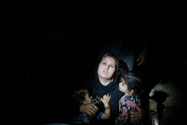 IRAQ. Makhmour Front Line. JuLy 25, 2016. Women and children...