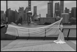 CHINA. Shanghai. Newly wed bride poses for photographs on the...