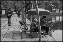 CHINA. Henan Province. Kaifeng. Fisherman around the city lake....