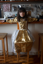 FRANCE. Fecamp. At home. 2016. Violet in the sun dress.