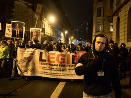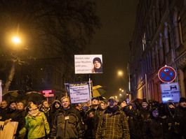 GERMANY. Leipzig. January 11, 2016. LEGIDA holds one-year anniversary march in Leipzig.