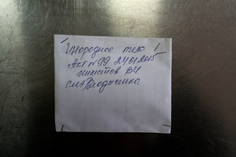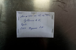 UKRAINE. Artemivsk. 2016. Near the frontline. Morgue window....