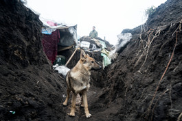 UKRAINE. Komyshuvakha (Luhansk area). February, 2016. Dog in...