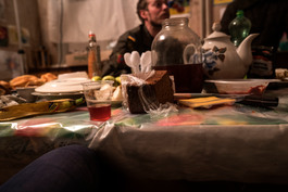 UKRAINE. Artemivsk. 2016. Near frontline. Dinner table. Soldier’s...