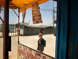 JORDAN. 2016. Outside the school at the Za'atari camp.