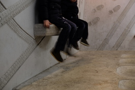 FRANCE. Paris. Port de la Chapelle. Two kids waiting the Tram....