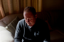 USA. Nogales, AZ. 2016. A man waiting in the downtown office...