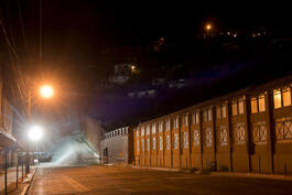 USA. Nogales, AZ. 2016. Spotlights on both sides of the border...