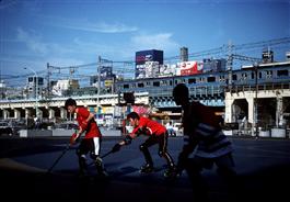 JAPAN. Tokyo. Playing hockey at Akihabara area. 1996.