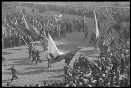 SPAIN. Barcelona. November 8, 1936. Crowd attending the parade...
