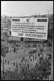 SPAIN. Barcelona. November 8, 1936. Russian banner in the parade...